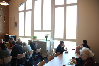 ![]() Seurakuntasalissa ruokailtiin. |